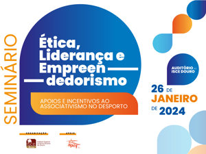 O ISCE Douro recebe no dia 26 de janeiro de 2024, o Seminário "Ética, Liderança e Empreendedorismo - Apoios e Incentivos ao Associativismo no Desporto", organizado pelo Departamento de Desporto do nosso Instituto.